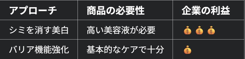高額な美白化粧品が売れなくなる だから「シミを消す」商品ばかり宣伝される。