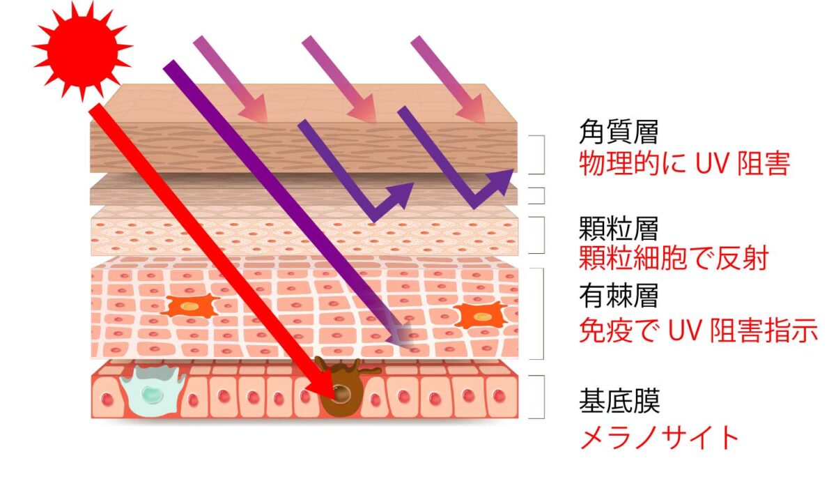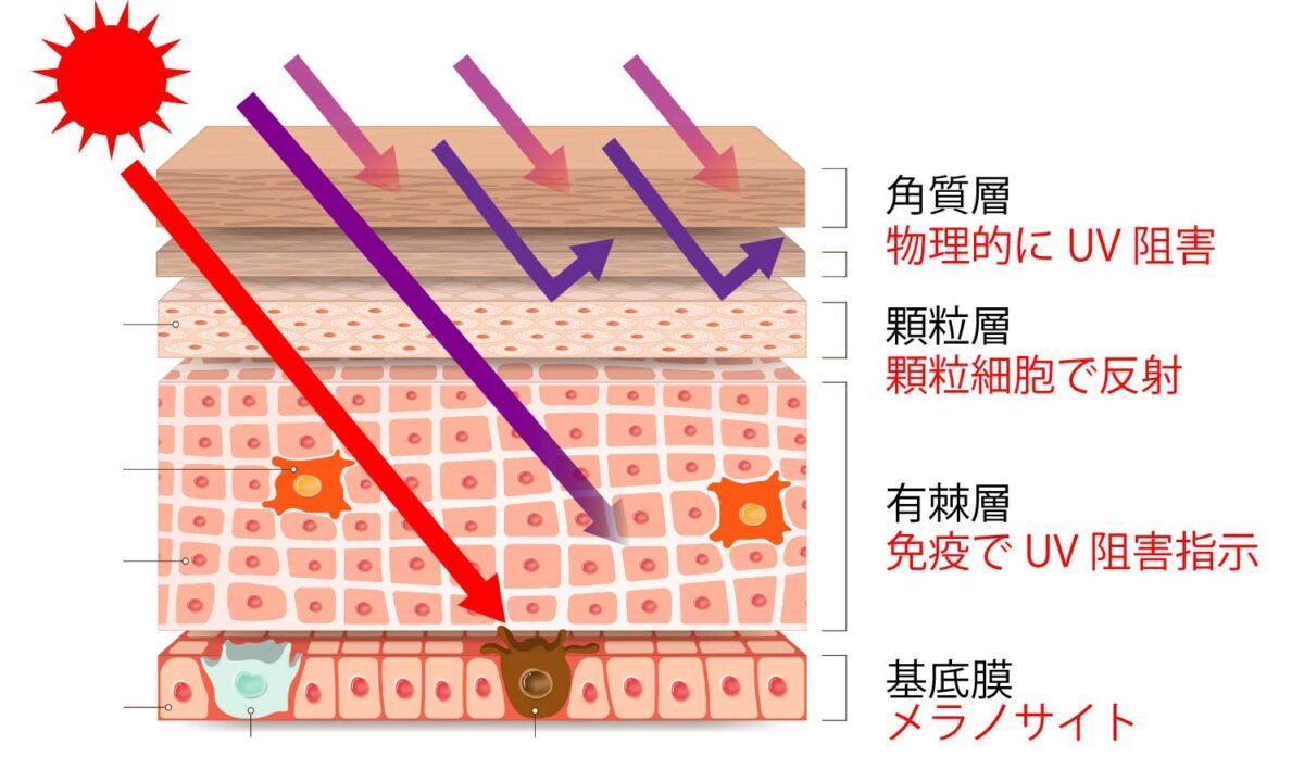 お肌の表面には、角質層と顆粒層というわずか0.06mmの極薄の層があります。この薄い層が紫外線から肌を守る大切なバリアなんです。