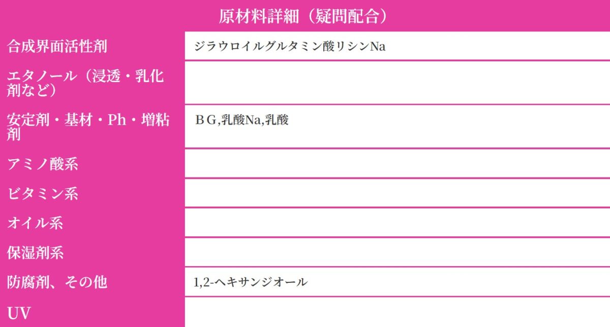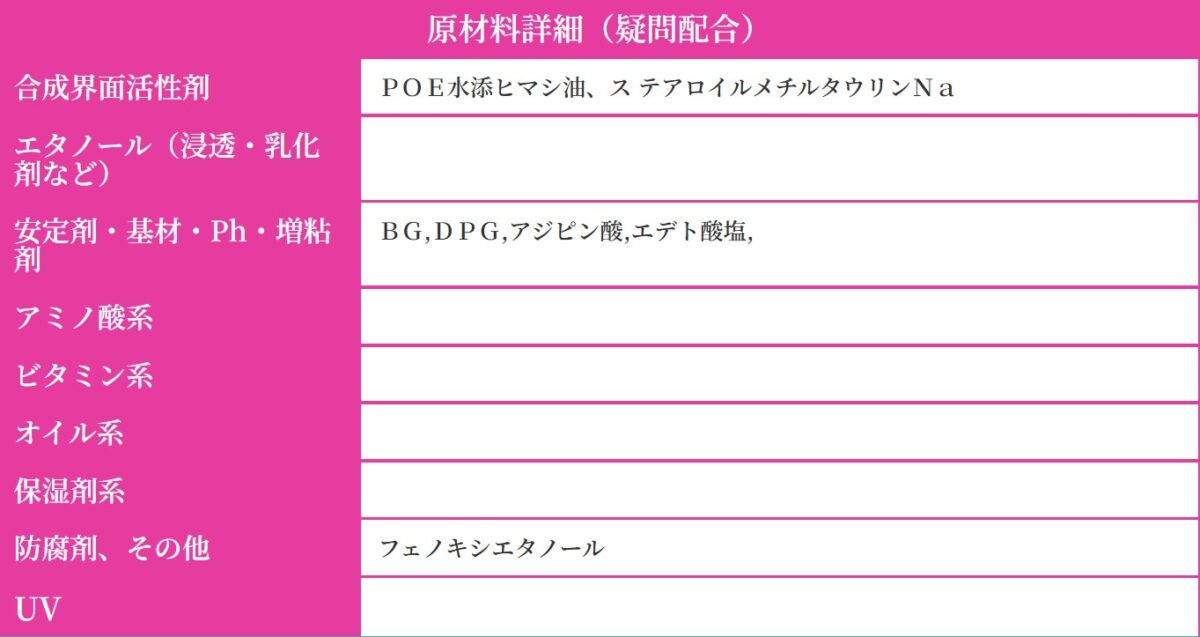 後は基材(DPG)と、変わったPh調整剤(アジビン酸、エデト酸塩)